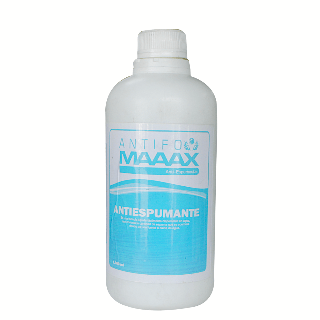 Formula líquida de la marca MAAAXCLOR para controlar la cantidad de espuma en el agua piscinas y spas.