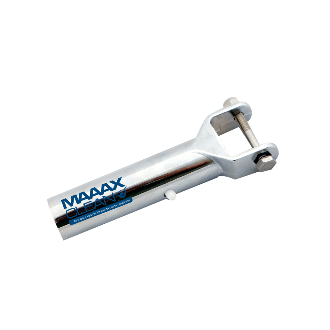 Mango metálico de la marca MAAAXCLEAN, para acoplar en carros aspiradores de lujo, que facilita la limpieza de piscinas y espejos de agua.