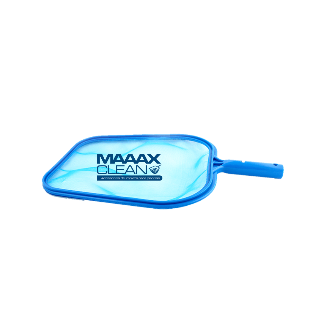 Nasa de color azul marca MAAAXCLEAN ideal para recoger las hojas o partículas pequeñas que quedan en las superficie de la piscina.
